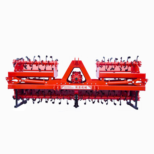 该机为配套大功率 (73.5kW以上)拖拉机的大型折叠旋耕机具。该机从根本上解决了在大负荷驱动作业下对机具的坚固可靠要求,同时又解决了机具运输挂载中的超宽问题,且操作简单。配合折叠功能及更换刀轴(刀具)可完成旱田旋耕、灭茬;水田搅浆、平整等多项作业,一机多用,适应范围极广。